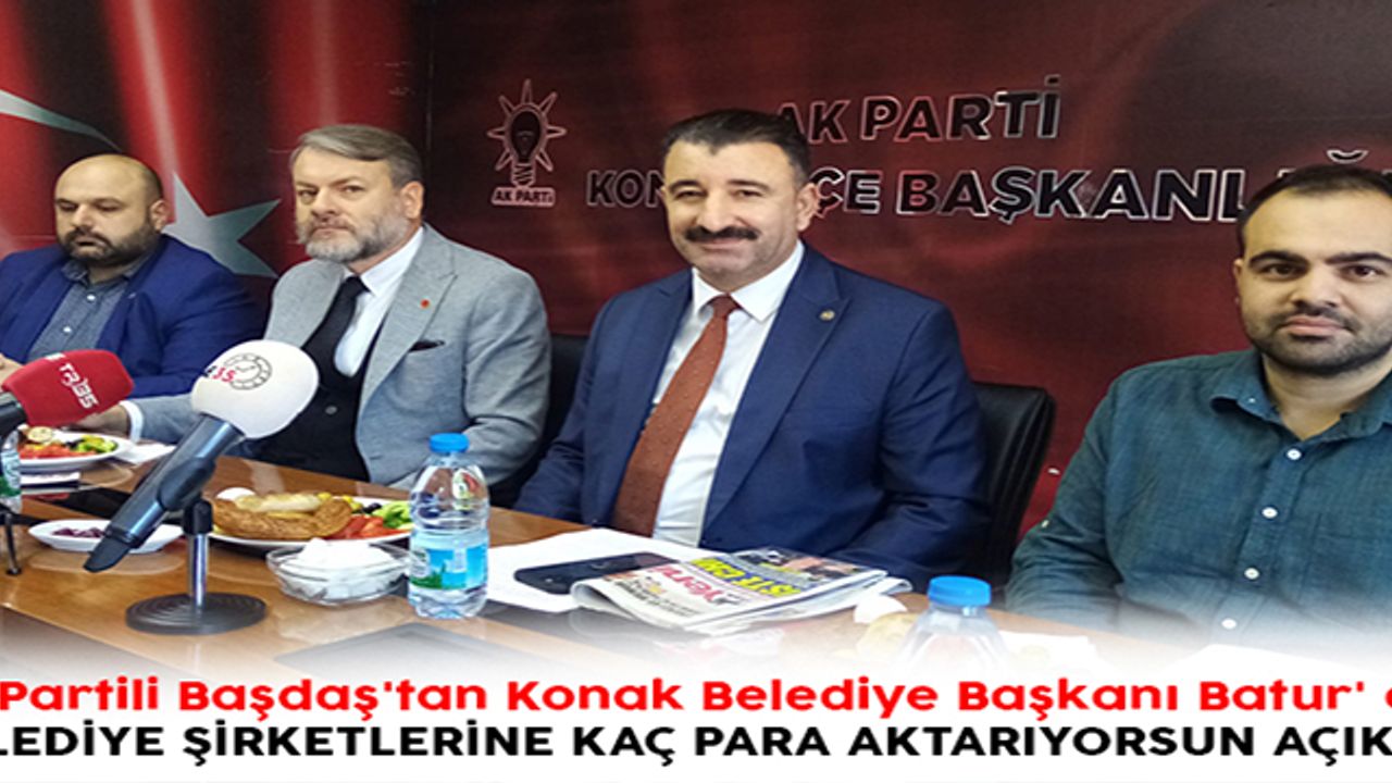 Ak Parti Konak İlçe Başkanı Sait Başdaş, Konak Belediyesi'nin 2022 bütçesini sert bir dille eleştirdi. Konak'ın batağa sürüklendiğini belirten Başdaş, Konak Belediye Başkanı Abdül Batur'a seslenerek 'Bütçenin yüzde 50'sini aktardığın belediye şirketlerine ne kadar para aktarıyorsun açıkla' dedi.