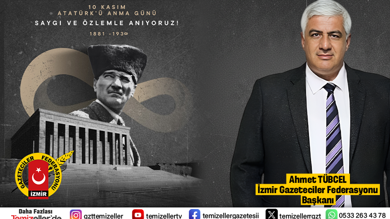 İzmir Gazeteciler Federasyonu (İGF) Başkanı Ahmet Tübcel, 10 Kasım dolayısıyla yayımladığı mesajda, Atatürk’ün fikirlerinin, ilkelerinin ve Cumhuriyet’in değerlerinin daima yaşatılmasının önemine vurgu yaptı.