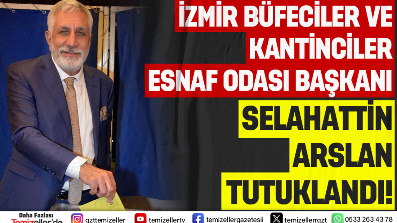 İzmir Büfeciler Odası Başkanı Selahattin Arslan, tutuklanarak cezaevine gönderildi. 2000 yılından bu yana Oda’nın başkanlığını yürüten Aslan’ın, 2022 yılı öncesi hesaplarda usulsüzlük yaptığı ve zimmet suçlamalarını içeren 19 ayrı dosyası bulunduğu öğrenildi.