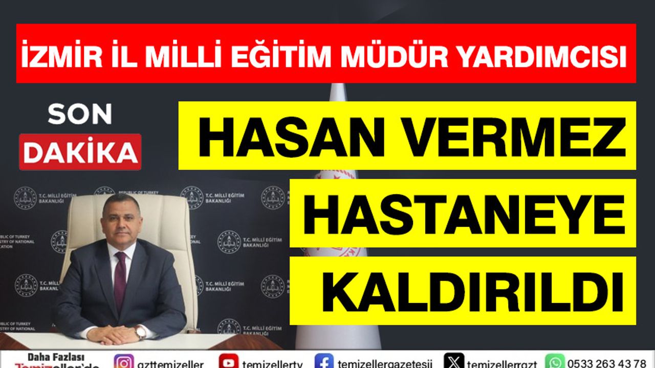 İzmir İl Millî Eğitim Müdür Yardımcısı Hasan Vermez, dün akşam saatlerinde evinde rahatsızlanarak kalp krizi şüphesiyle Buca Seyfi Demirsoy Devlet Hastanesi’ne kaldırıldı.