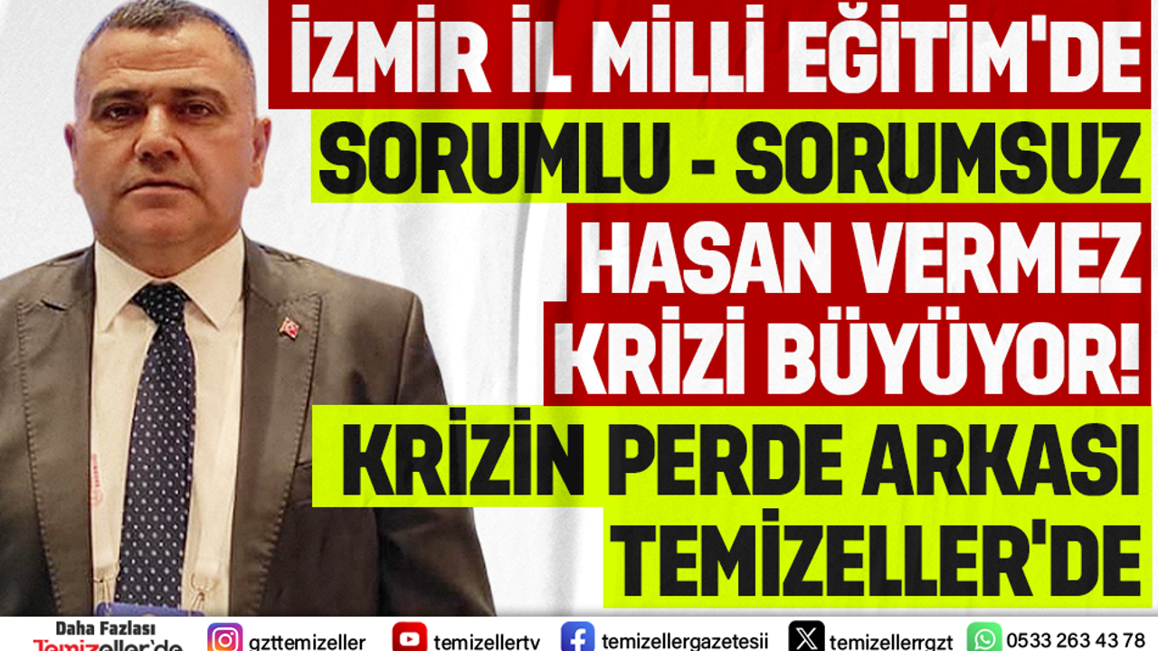 İzmir İl Milli Eğitim Müdür Yardımcısı Hasan Vermez, kulislerde hem tavırları hem de uygulamalarıyla gündemde. Temizeller ’in merceğine takılan perde arkası gelişmeler, onun sorumluluk almaktan kaçan tavrını bir kez daha gözler önüne seriyor.