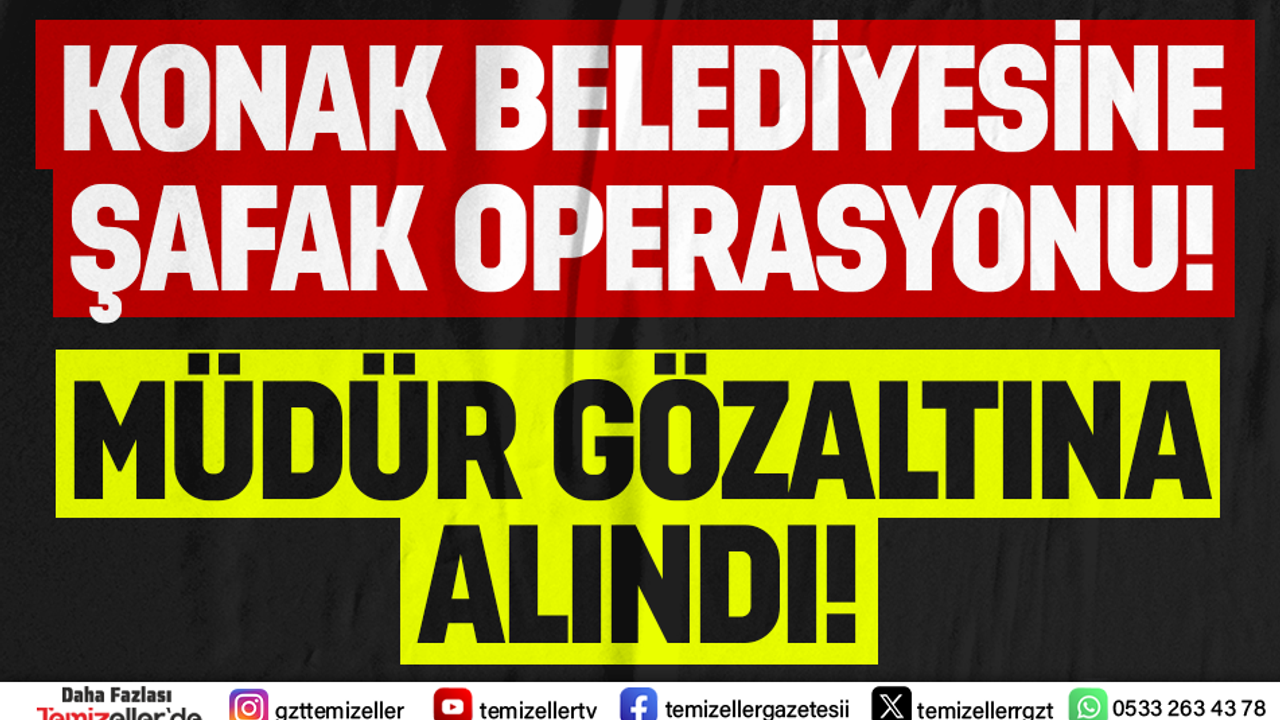 Mali Şube Müdürlüğü tarafından Konak Belediyesi bünyesinde görev yapan Ar-Ge Müdürü ve yanında çalışan 3 kişi, sabah saatlerinde gözaltına alındı. Edinilen bilgilere göre, Konak Belediyesi'nde yürütülen bazı projelerle ilgili soruşturma kapsamında müdürün adı geçiyor. Yetkililer, gözaltı işlemiyle ilgili ayrıntılı açıklama yapmazken, sürecin devam ettiği öğrenildi.