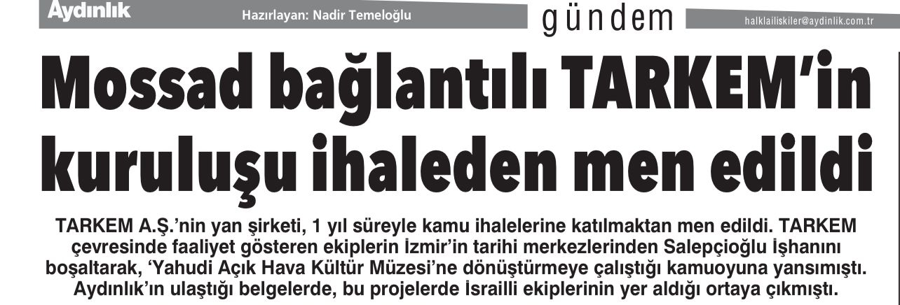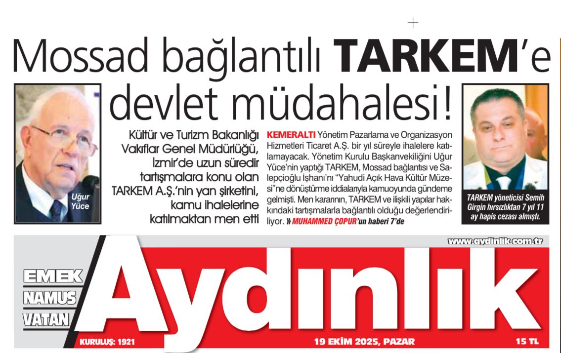 Haberlerinde, TARKEM çevresinde hareket eden bazı grupların İzmir’in tarihi merkezini “Yahudi Açık Hava Kültür Müzesi” konseptiyle yeniden şekillendirmeye çalıştığı, hatta projelerde “İzmir için 2. Kudüs” söylemiyle teopolitik hedeflere hizmet edildiği yönündeki iddiaları gündeme taşıdı.