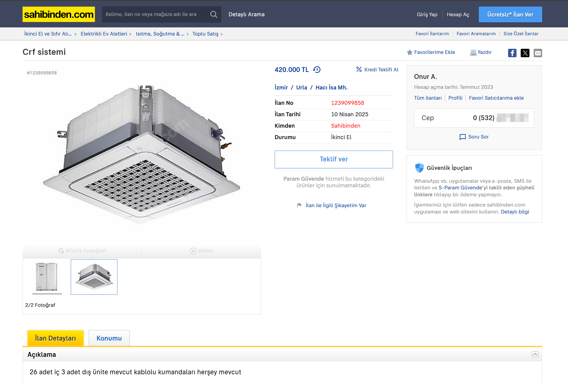 Temizeller ’in ulaştığı resmi raporlarda en çarpıcı tespitlerden biri, okulun demirbaşına kayıtlı CRF marka iklimlendirme sisteminin okul müdürü Onur Ayaz tarafından 10 Nisan 2025 tarihinde 420 bin TL bedelle internette satışa çıkarıldığı iddiası.