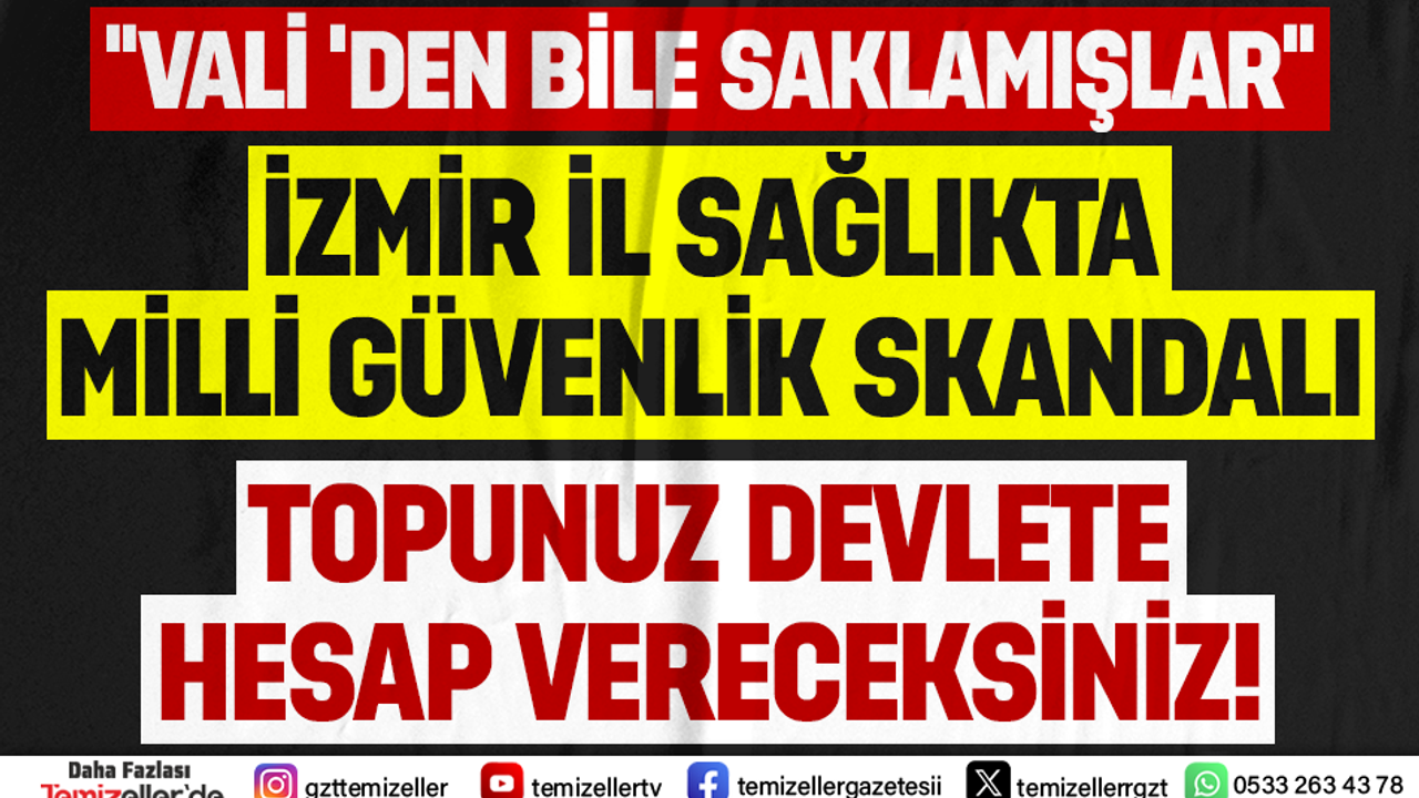 TEMİZELLER Haber Merkezi, Genel Yayın Yönetmeni Usta Gazeteci Ahmet Tübcel öncülüğünde aylarca süren takip, analiz, belge havuzu incelemeleri ve iz sürmeleri sonucunda İzmir İl Sağlık Müdürlüğü’nde saklanan **tarihin en büyük “milli güvenlik SKANDALI’nı ortaya çıkarmıştır. Bu dosya öyle ciddidir ki; artık sadece bir kurumun değil, kamu düzenini ve ulusal güvenliği ilgilendirmektedir.