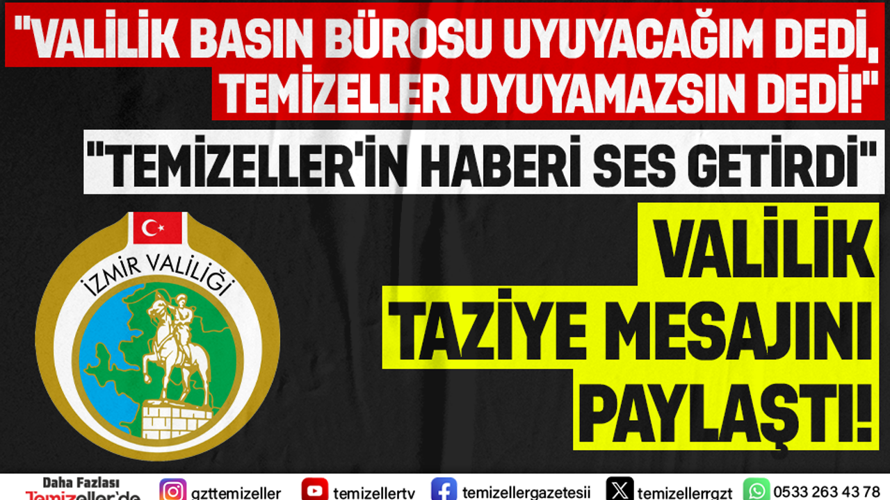 İzmir Valiliği Basın Bürosu’nun uzun süredir sessiz kalması kamuoyunda büyük rahatsızlık yaratırken, Temizeller ’in haberi bir kez daha devlet kurumunun refleksini harekete geçirdi.