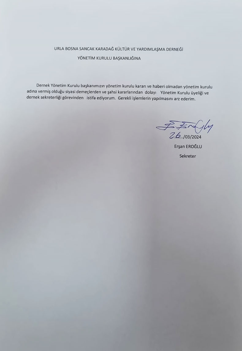 2024 yerel seçimlerinden hemen önce Bosna Hersek Kültür Derneği Başkanı Ertuğrul Özer, CHP’li Selçuk Balkan’ın seçim toplantısına katılarak, mikrofonla sahneye çıkıp, büyük bir coşkuyla “CHP adayını destekliyoruz” açıklamasını yüksek sesle yapmıştı. O açıklamanın yapıldığı salonda, derneğin yönetim kurulunda yer alan isimlerden biri de şu anda AK Parti Urla İlçe Başkanı Barış Bükülmez’di