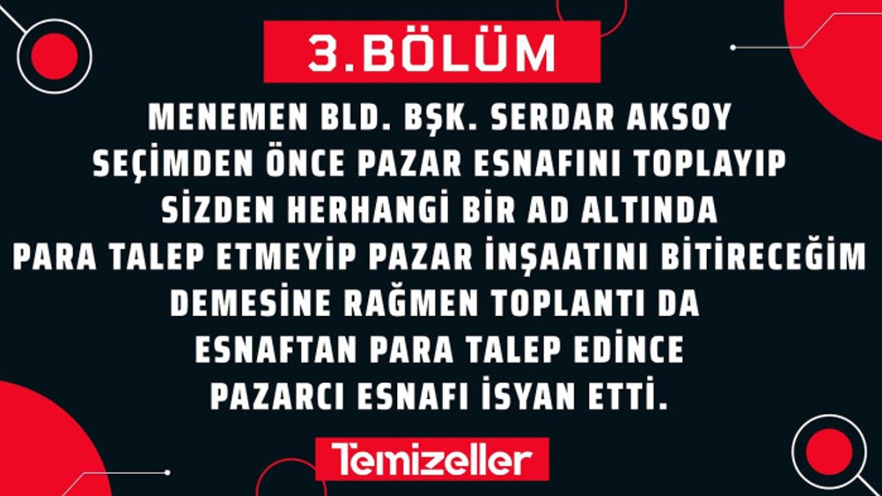 Genel 3 - MENEMEN BEL.BŞK. SERDAR AKSOY PAZAR ESNAFINDAN PARA TALEP EDİNCE PAZAR ESNAFI İSYAN ETTİ 3 - MENEMEN BEL.BŞK. SERDAR AKSOY PAZAR ESNAFINDAN PARA TALEP EDİNCE PAZAR ESNAFI İSYAN ETTİ 04.06.2022 - 09:44 04.06.2022 - 09:44